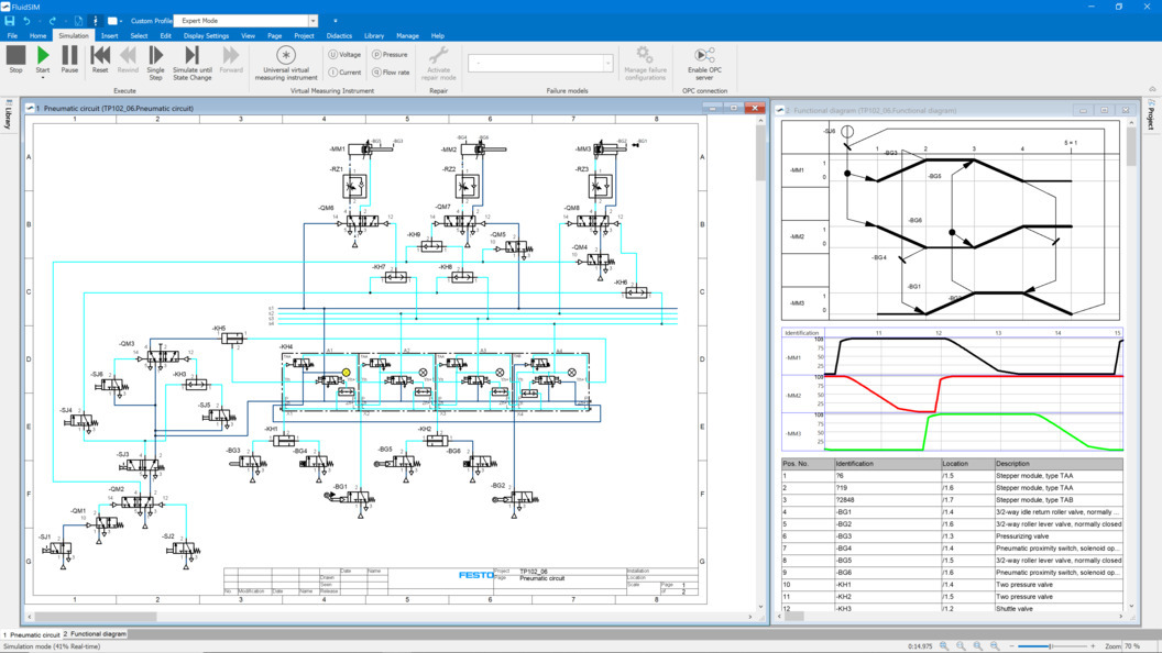 FluidSIM 6 là ứng dụng để tạo và mô phỏng mạch điện khí nén và điện khí nén. Các kỹ năng kỹ thuật có giá trị được học bằng cách thiết kế mạch và mô phỏng chúng theo cách tương tác.